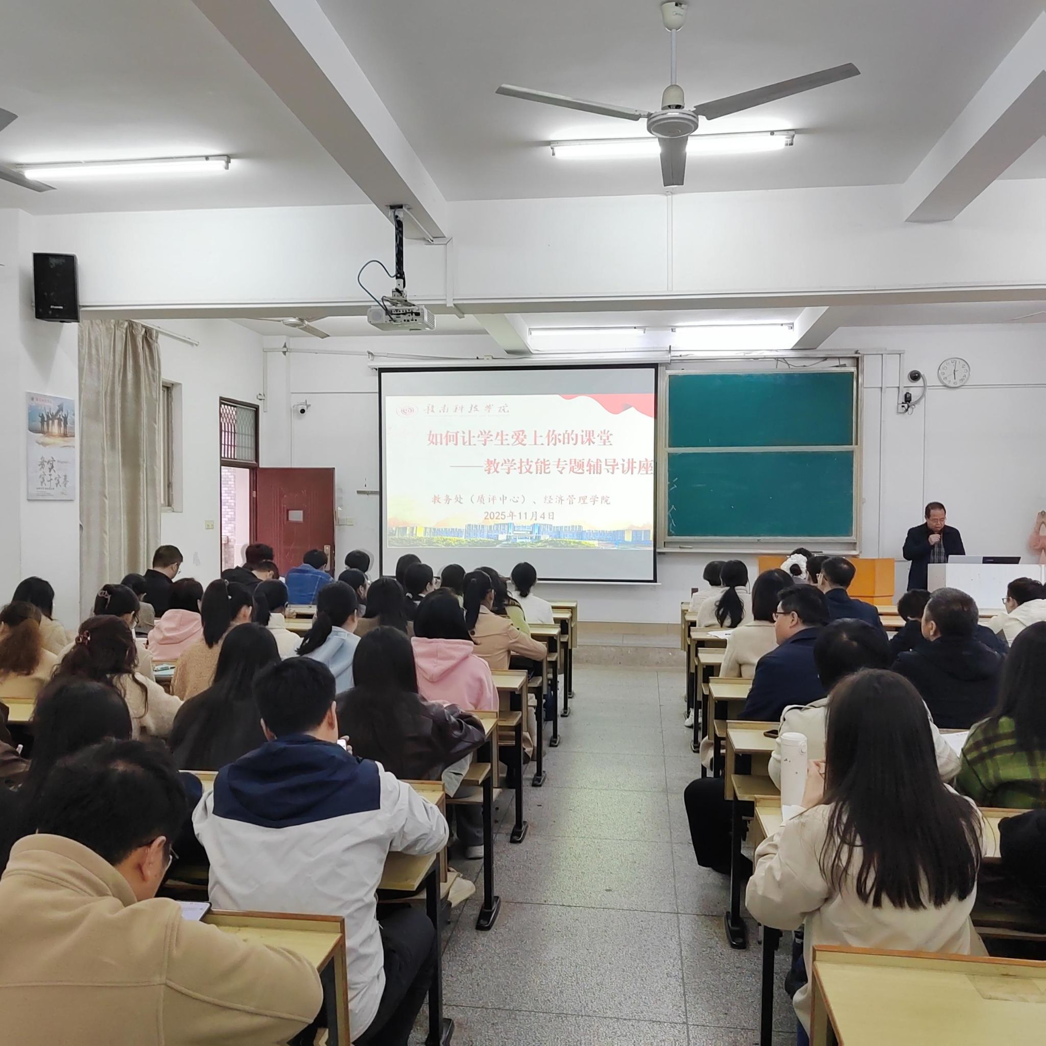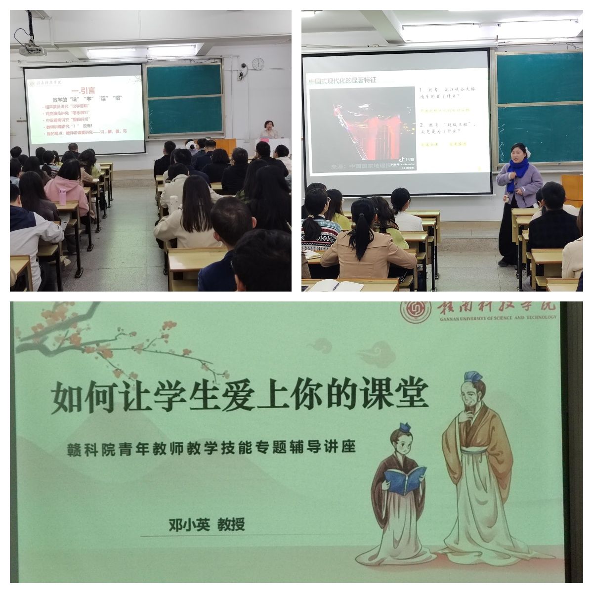 本网讯:为落实本科教学质量持续提升要求,切实增强青年教师职业责任心与教学技能,11月4日下午,由教务处(质评中心)组织、william威廉英国承办的“如何让学生爱上你的课堂”教学技能专题辅导讲座,在新民楼(2 栋)202多媒体教室顺利举行。讲座邀请了校级专职教学督导邓小英教授和江西省高校思政课和红色文化课程教学比赛一等奖获得者许婷婷两名教师主讲,全校100多名近两年新入职青年教师参会,讲座由william威廉英国党委委员、副院长钟滨主持。