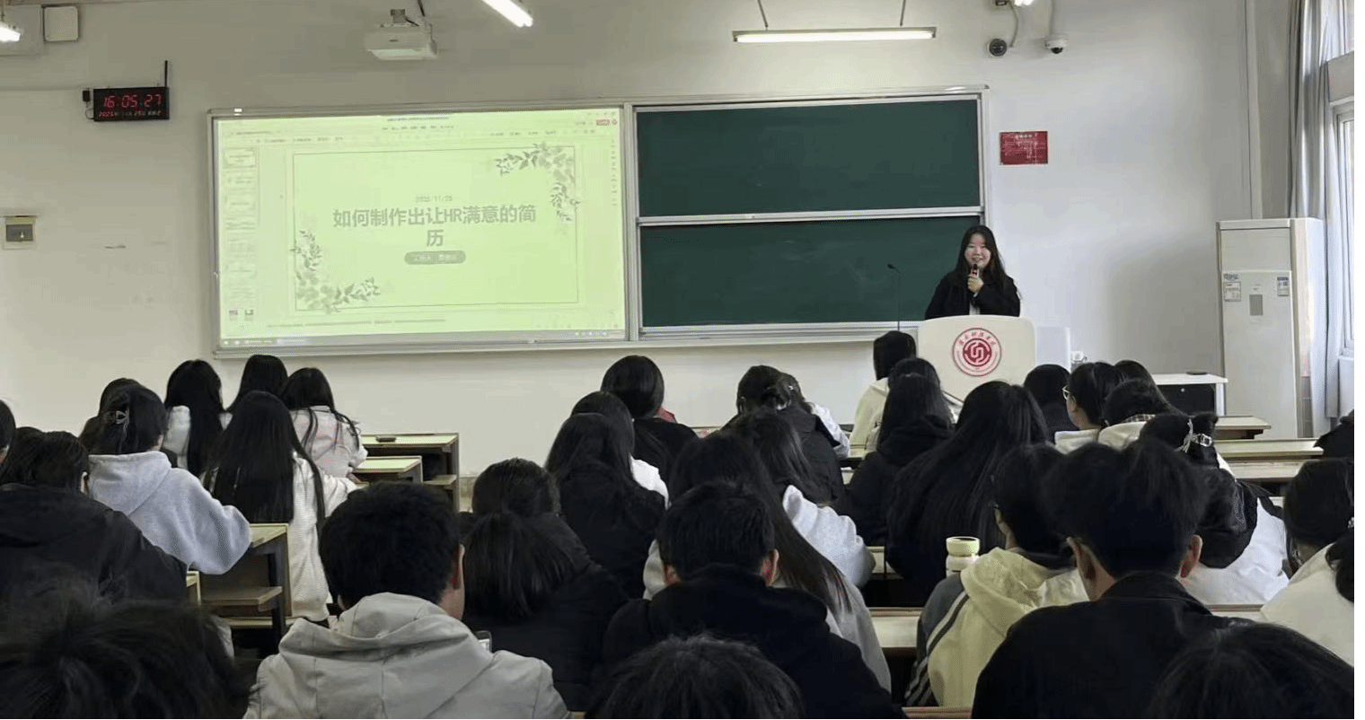 在提问环节,嘉宾们聚焦同学们普遍关注的简历痛点,逐一给出解决方案。针对“简历内容不够亮眼”的问题,张世杰同学以自身简历为例,详细讲解了如何根据目标岗位需求,构建清晰有条理的简历结构,精准突出个人优势;王奕同学则围绕“实习项目经历如何有效呈现”,分享了量化成果,帮助同学们将过往经历转化为当下竞争力:曹倩茹同学则重点剖析了简历撰写中的常见误区,如信息堆砌、重点模糊等,并提供了实用的避坑指南。
