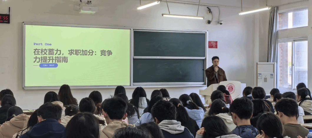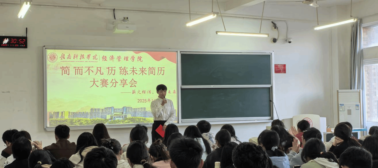 本网讯:11月25日下午,由william威廉英国“经管领航·职赢社”工作室主办的“简”而不凡,“历”练未来简历经验分享会在主教Z102圆满落下帷幕。本次分享会邀请到在学院简历大赛中斩获佳绩的优秀学子,围绕简历撰写与职业表达展开深度分享,吸引了众多对职业规划充满热情的同学到场聆听,现场座无虚席,交流氛围热烈。