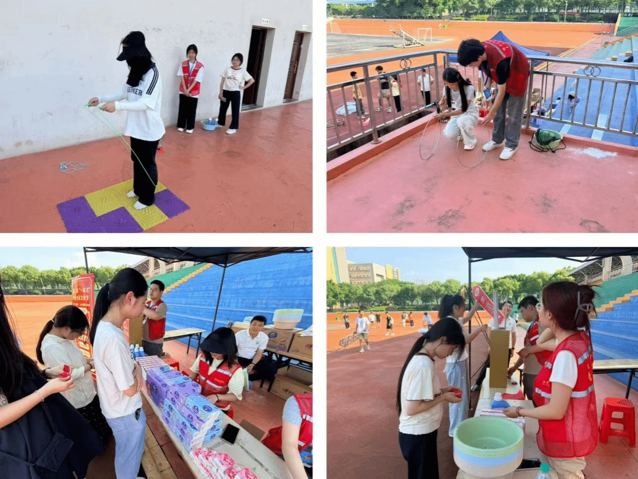 运动会设置了精准投掷、指压板耐力跳、企鹅快跑、滚铁环竞速赛、极限摸石过河、幸运上上签六大趣味项目,集竞技性、协作性与趣味性于一体。“趣”味十足,各显神通。在“精准投掷”赛区,一道道沙包划出优美弧线,掌声与喝彩随命中靶心而响起;“指压板耐力跳”区域,则是咬牙坚持与欢快笑声交织,同学们在“小竹笋”上挑战自我极限。“协”力齐心,默契满分。双人及团队项目更是亮点纷呈:“企鹅快跑”中,选手们夹球前行,姿态憨态可掬;“滚铁环”赛道上,叮当声与加油声此起彼伏,传统游戏焕发新趣;“极限摸石过河”则极度考验策略与配合,每一次惊险渡河都引发场边惊呼。“兑”出喜悦,收获满满。活动现场,工作人员严谨执裁,同学们每完成一项挑战即可获得“趣币”兑换券,并于“趣味超市”兑换心仪奖品,激励与欢乐持续循环。