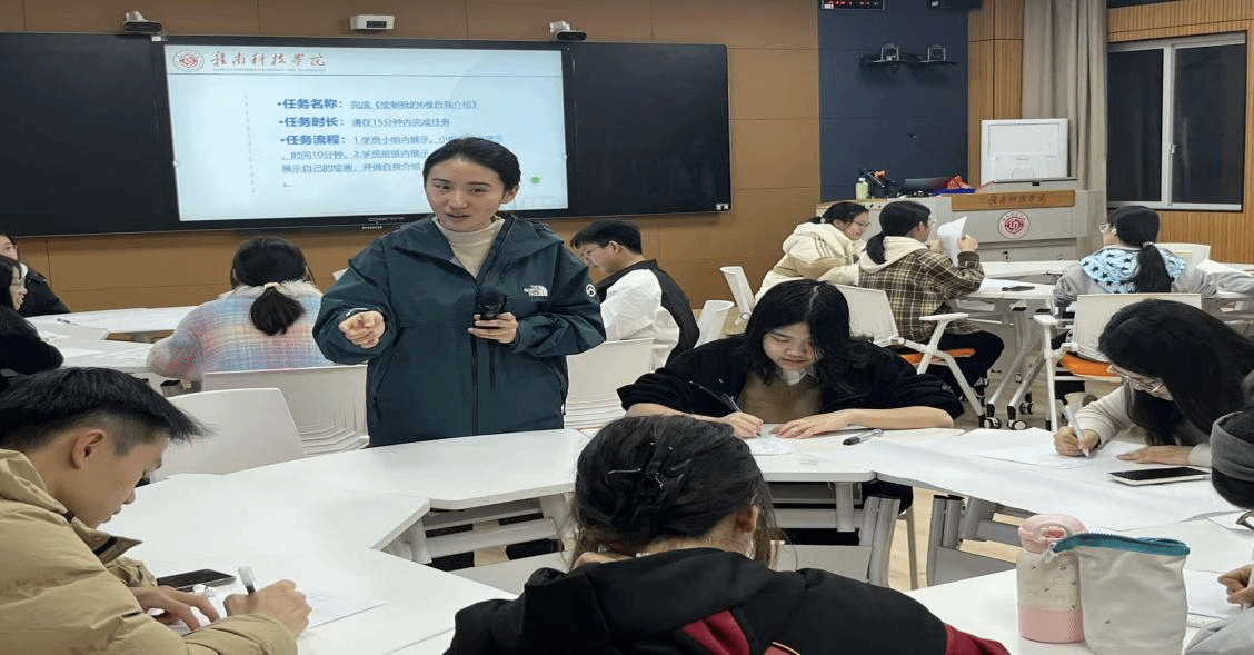 针对困难学生普遍存在的表达不自信、技能展示不突出等问题,培训还设置互动实践环节。学生们通过绘制《我的6维自我介绍图》并上台展示,逐步增强自我认知与表达勇气,现场气氛积极活跃。